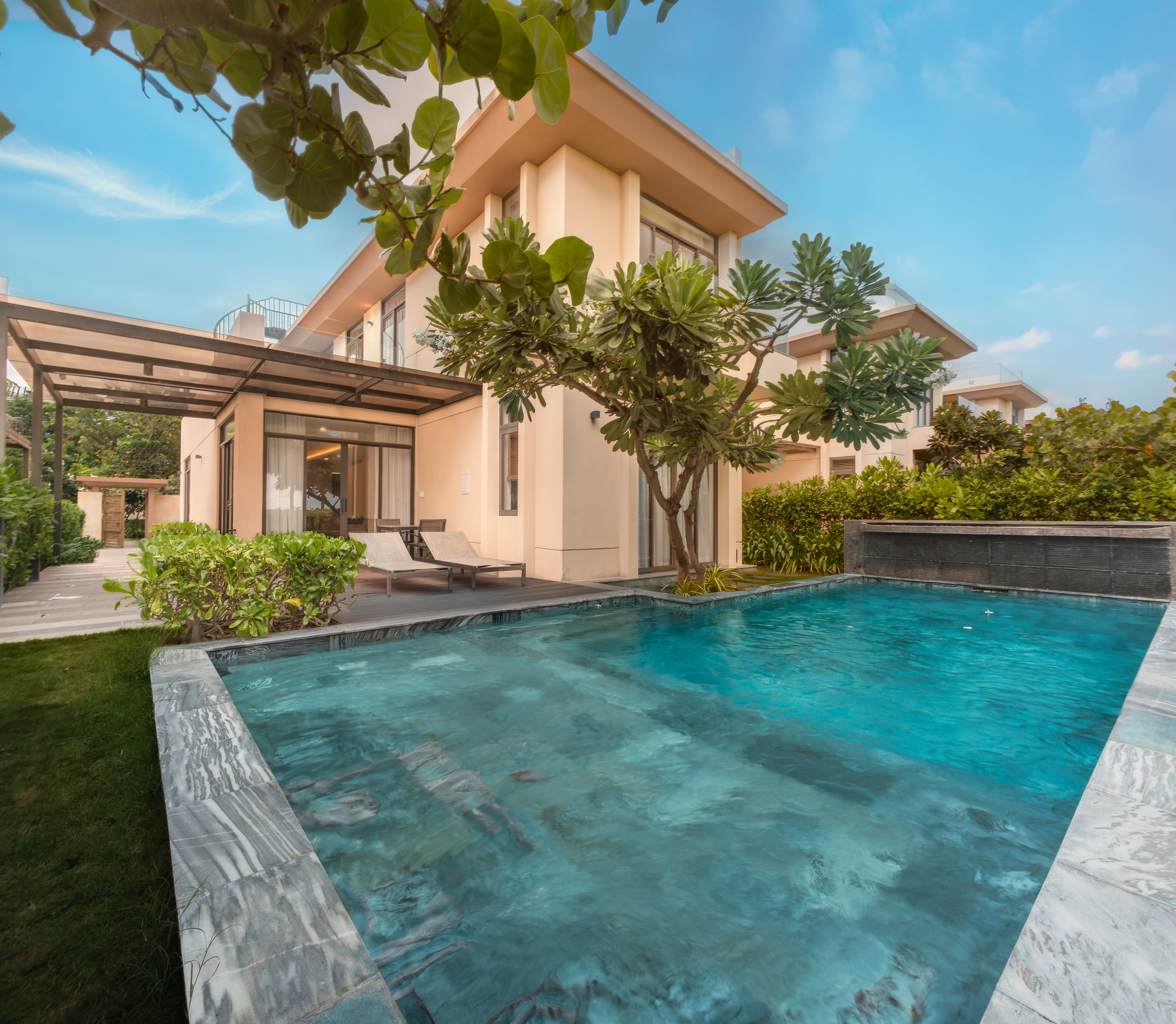 각 빌라에는 자체 수영장(240m2)이 있습니다. 거실 공간은 2층이며 다음을 포함합니다: 거실, 주방, 에어컨, 야간 조명, TV, 책상, 대형 창문, 욕실 2개, 세탁기(세제 및 섬유유연제 포함)를 갖춘 현대적인 침실. 품질 디자이너 가구는 손님에게 완전히 다른 수준의 편안함과 휴식을 제공합니다. 각 빌라에는 손님이 자유롭게 요리할 수 있도록 스토브, 식탁, 향신료 및 완비된 주방 도구가 있습니다.